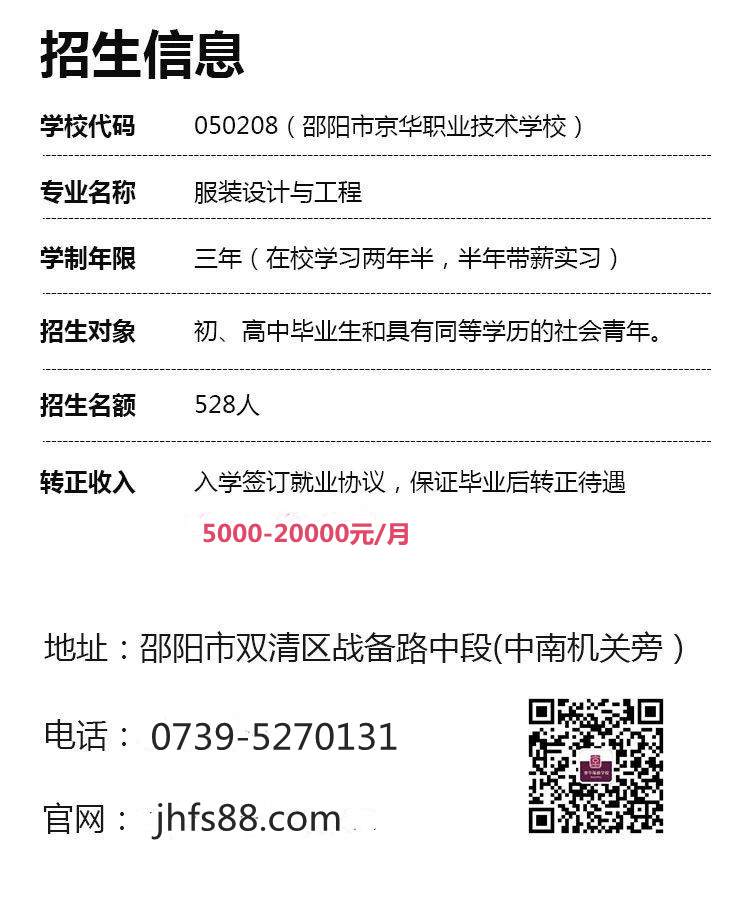邵陽京華職業技術學校(又名邵陽京華服裝學校)是湖南婁底服裝設計學校,名師團隊、20年一線教學經驗、0基礎入學到精通,想學服裝設計來邵陽京華服裝設計學校。咨詢電話:18607395696