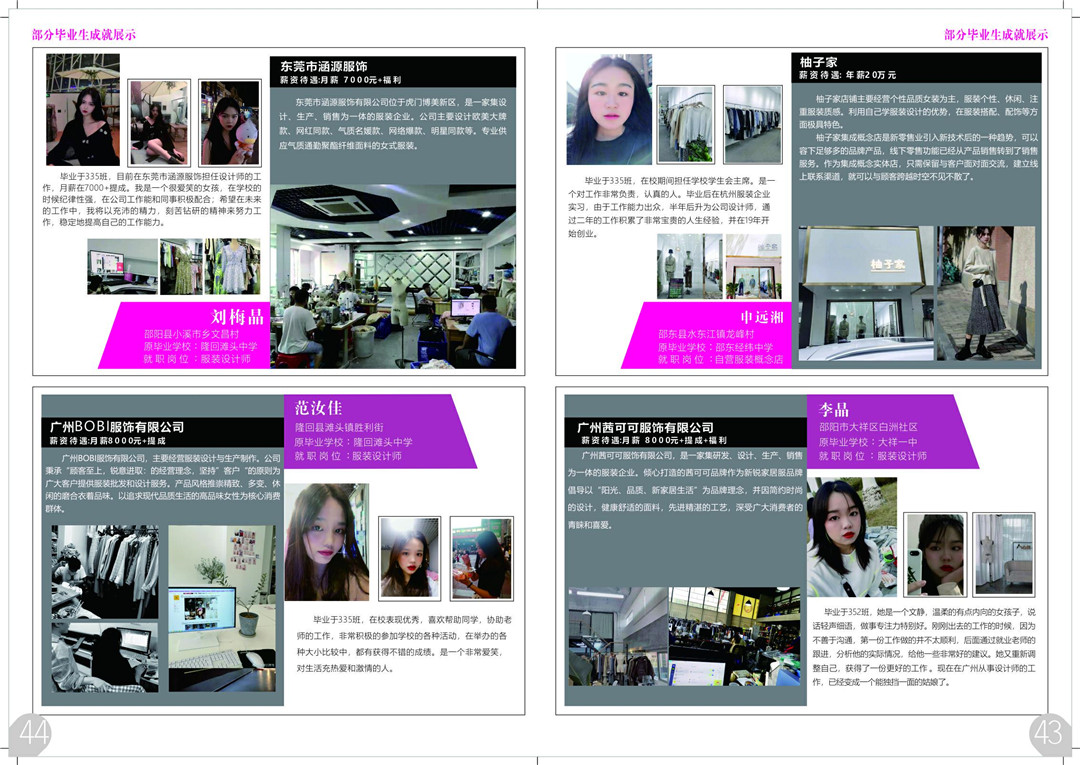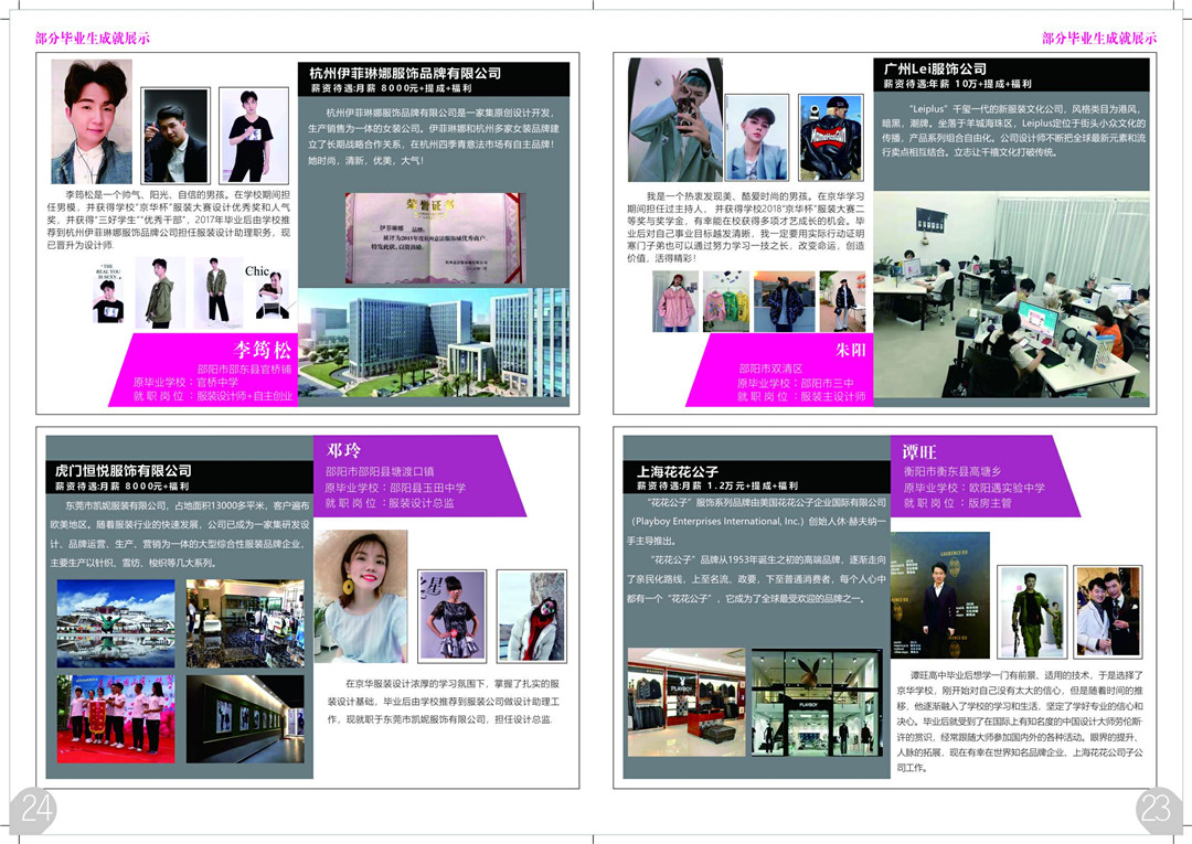 邵陽京華服裝設計學校是經教育部門批準備案的一所全日制品牌職業學校。我校只開設一個“服裝設計與工藝專業”,多年來為社會輸送了數千名合格的服裝設計師,這個專業的就業前景是容量無限、前途一片光明。